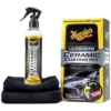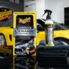 Zastrzeżona technologia Meguiar’s Ultimate Ceramic Coating umożliwia utwardzenie produktu i stworzenie solidnej ochrony, podobnej do profesjonalnych powłok ceramicznych. Ta najnowocześniejsza formuła pozwala uzyskać korzyści w postaci ultra trwałej ochrony, która zwiększa połysk i gładkość jednocześnie tworząc na powierzchni niewiarygodny efekt hydrofobowości, ale nie wymaga skomplikowanego procesu nakładania lub docierania. Jedną z zalet tej powłoki jest to, że maskuje niewielkie wady lakieru. Aby jednak uzyskać jak najdłuższy efekt, zalecamy, aby przed nałożeniem lakier był w doskonałym stanie. Wykonanie wcześniej pełnego procesu korekty lakieru (glinkowanie, czyszczenie lakieru i polerowanie) zapewni najlepsze wiązanie, największą wydajność i najdłuższą trwałość. Proces aplikacji powłoki jest łatwy. Po prostu spryskaj powłokę bezpośrednio na powierzchnię jednego panelu karoserii. Następnie rozprowadź za pomocą wysokiej jakości ręcznika z mikrofibry. Gdy zauważysz, że „odparowuje”, wytrzyj panel oddzielną mikrofibrą premium. Dzięki Ultimate Ceramic Coating otrzymasz ceramiczną powłokę lakieru najwyższej jakości, ale nie musisz się martwić tym, że nie jesteś certyfikowanym lub przeszkolonym fachowcem, aby prawidłowo ją zastosować. Może jej używać każdy, dzięki prostej aplikacji i łatwemu docieraniu.